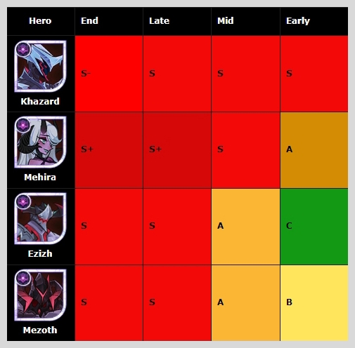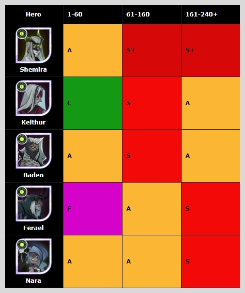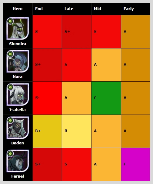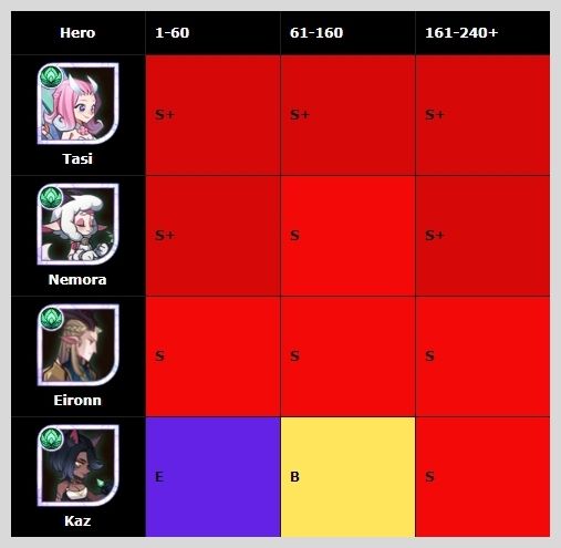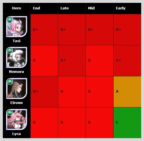 그레이브본 종족 중에서는 중반과 후반에 S+를 받은 세미라가 1티어 영웅이 되었습니다.
