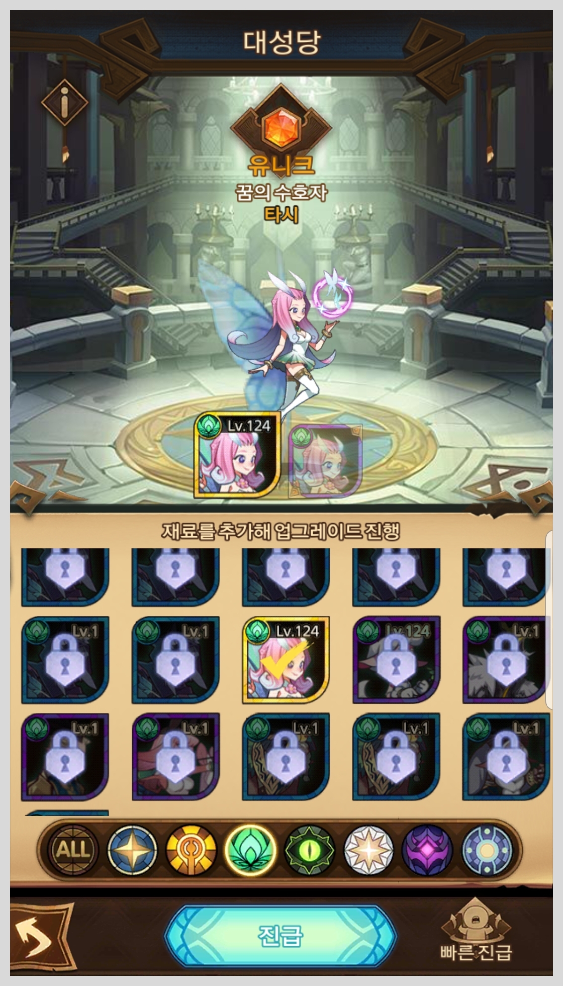 7가지 종족이라고 설명드렸는데 한 종족이 빠졌죠. 이계로부터 온 영웅 종족이 있는데요 아서라는 영웅 하나뿐이고, 제가 아직 소환하지 못한 종족이라서 등급표를 보면서 다시 설명드리도록 하겠습니다.