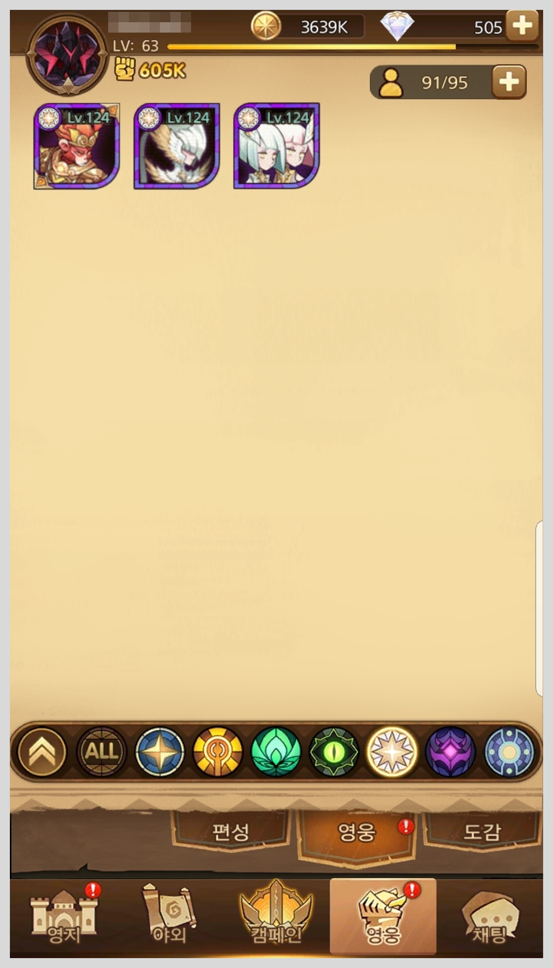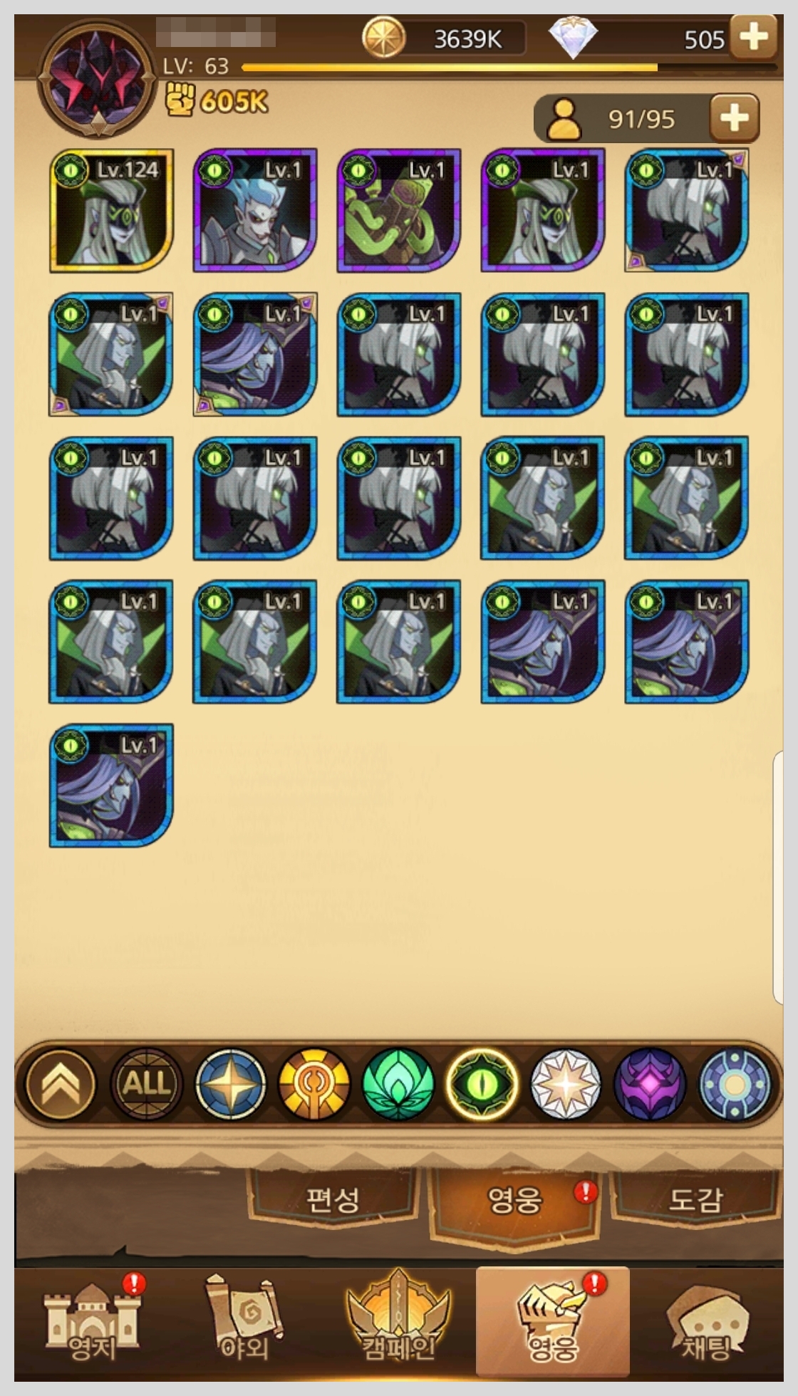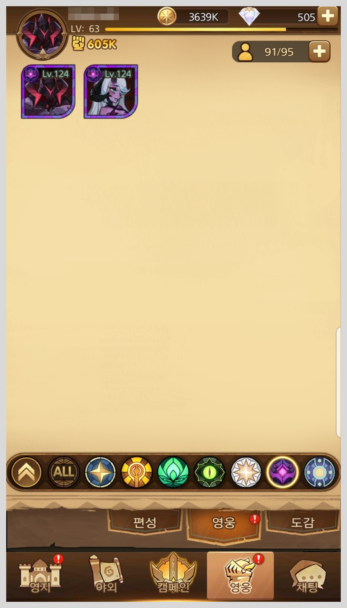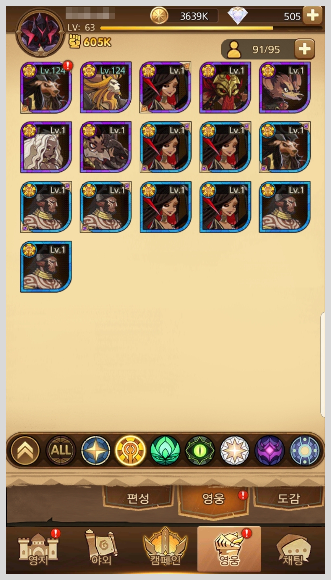 AFK아레나 등급표를 보기전에 초보분들을 위해서 종족 종류와 영웅 레벨에 대해서 간단히 설명 해보겠습니다.