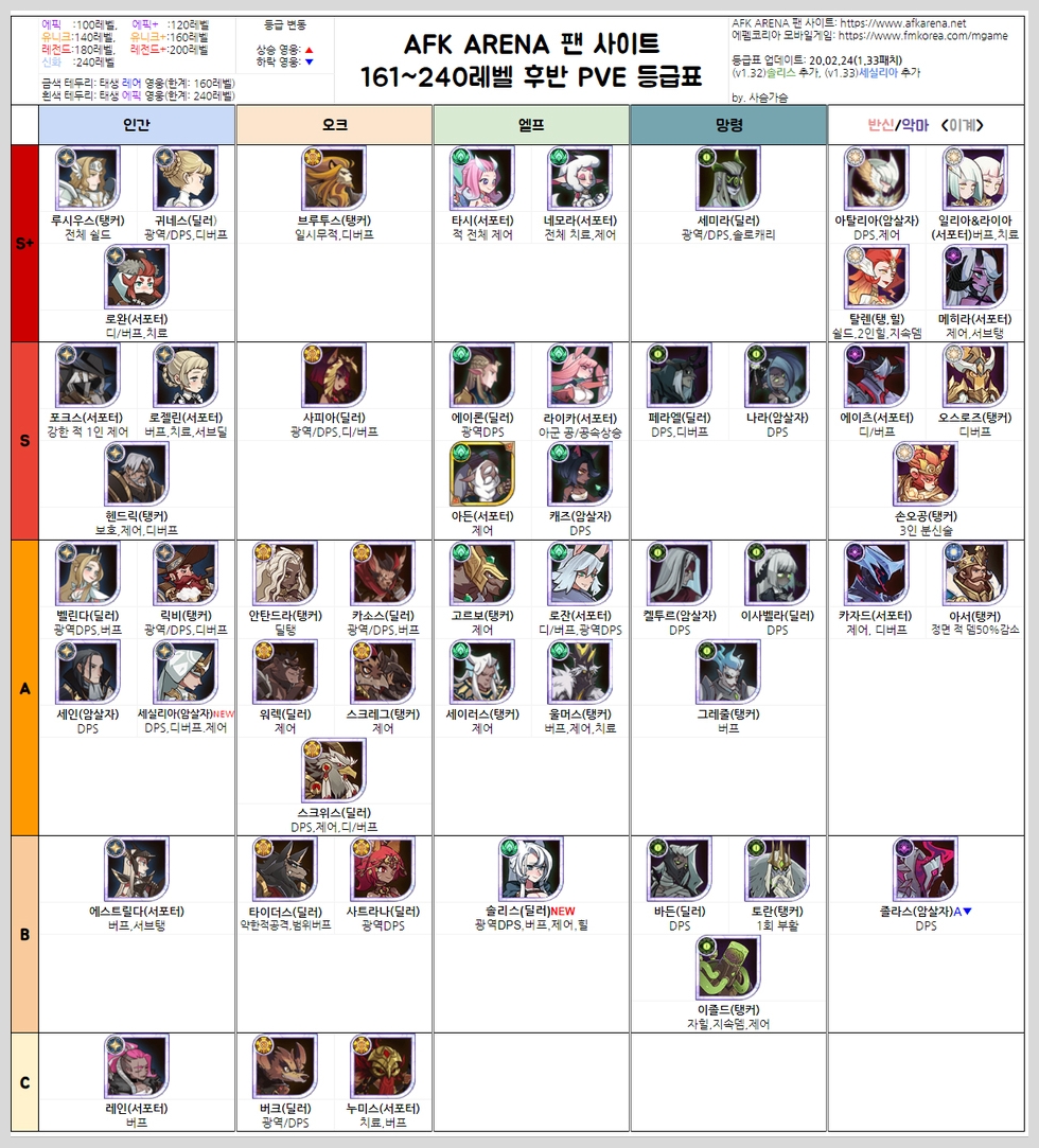 AFK아레나 등급표 PVE - 한국 팬사이트 출처