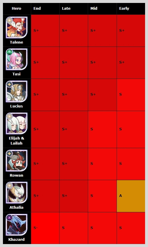 탈렌, 타시, 루시우스는 꼭 키워야 되는 영웅이다! 나머지는 상황에 맞게 맞는 영웅으로 성장시키면 될 것 같습니다.