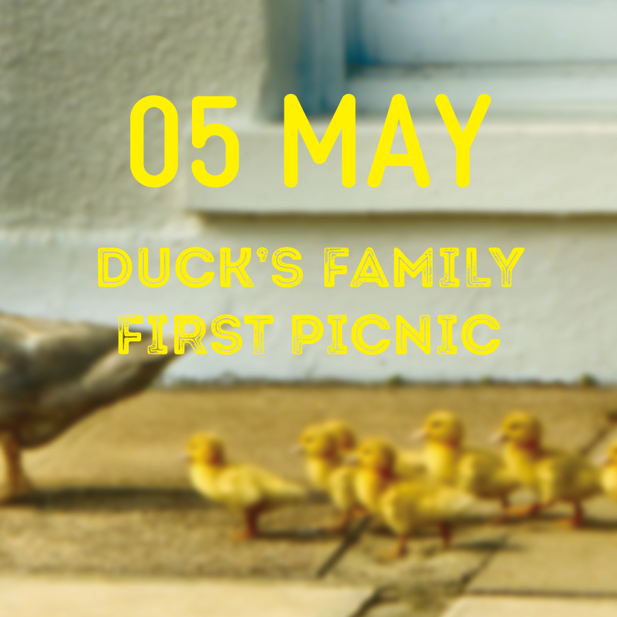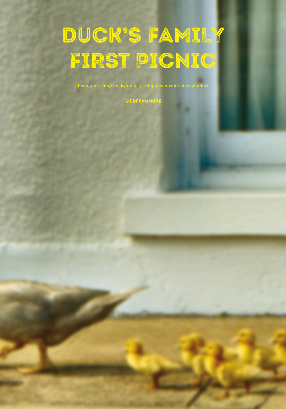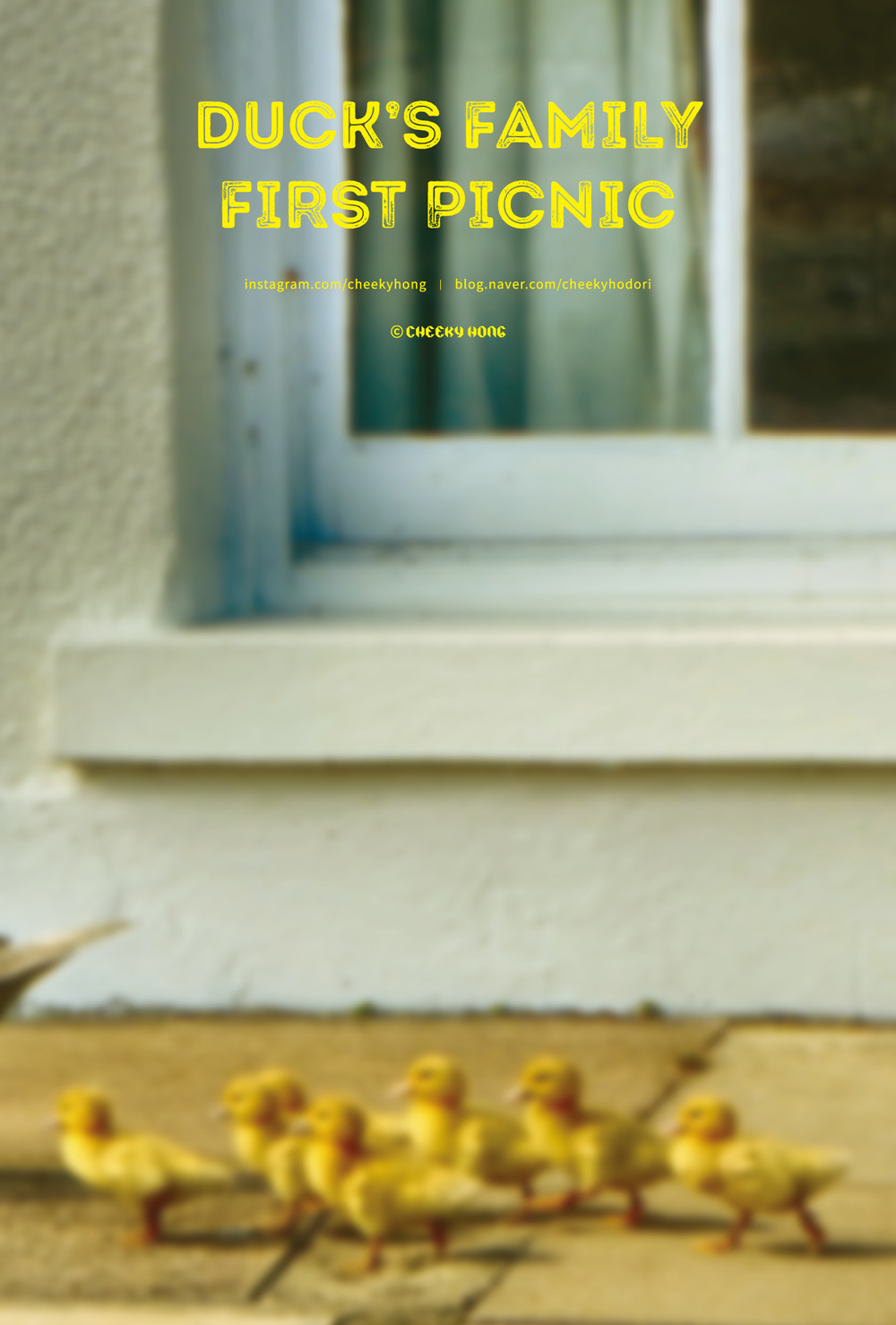5월 핸드폰 배경화면은 크게 두 가지 타입의 디자인으로 만들어 보았는데요. 첫 번째 보여드릴 디자인은 엄마따라 졸졸졸이라는 제목의 디자인이에요. 이미지를 보시면 왜 그렇게 지었는지 이해가 되시죠? 상단에는 오리 가족의 첫번째 피크닉이라는 타이틀이 영문으로 적혀있고요. 아래쪽에 5월 달력이 들어가 있는 달력형 타입입니다.