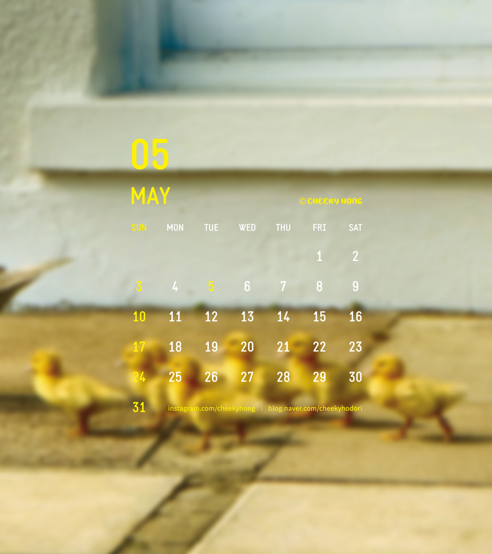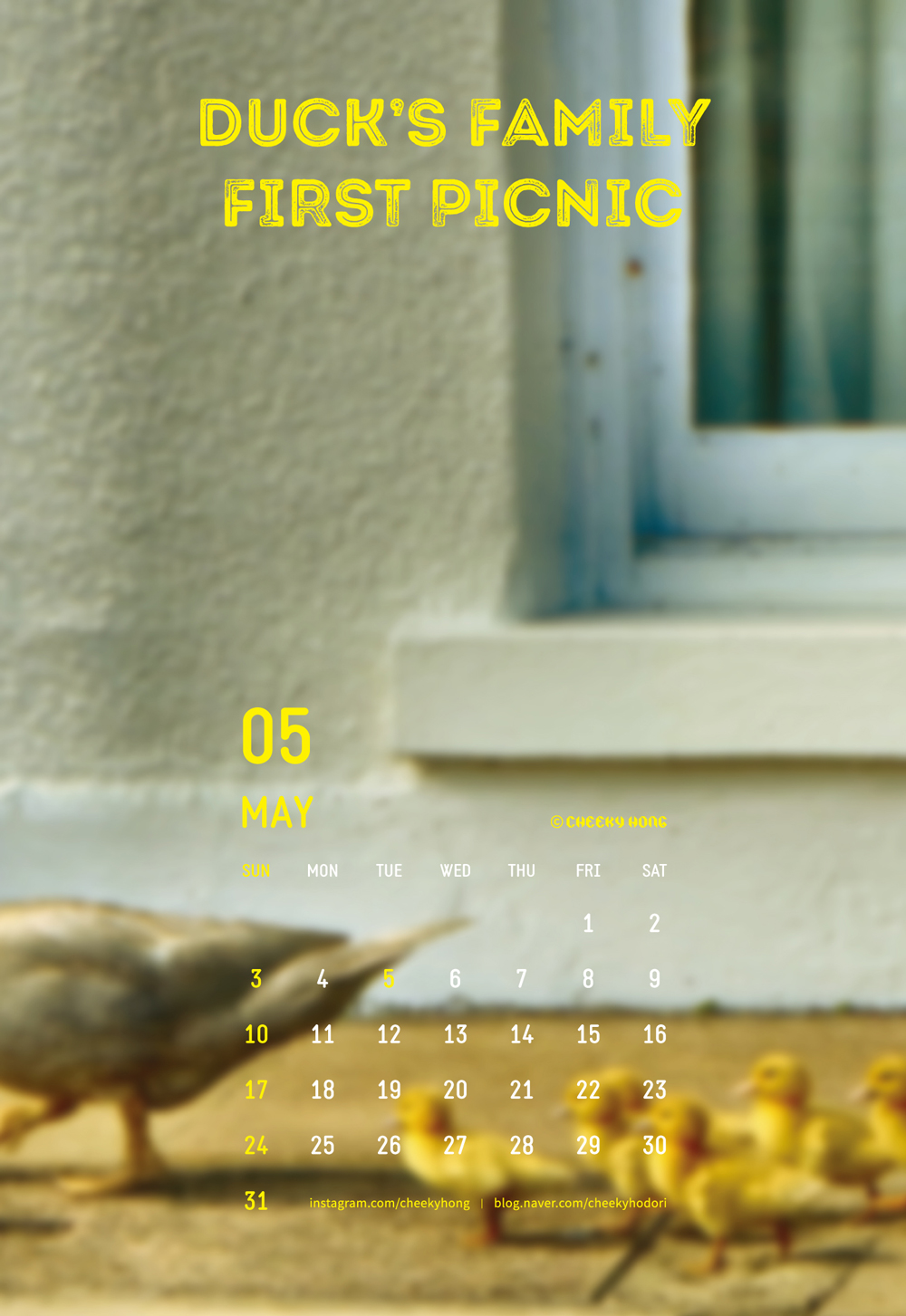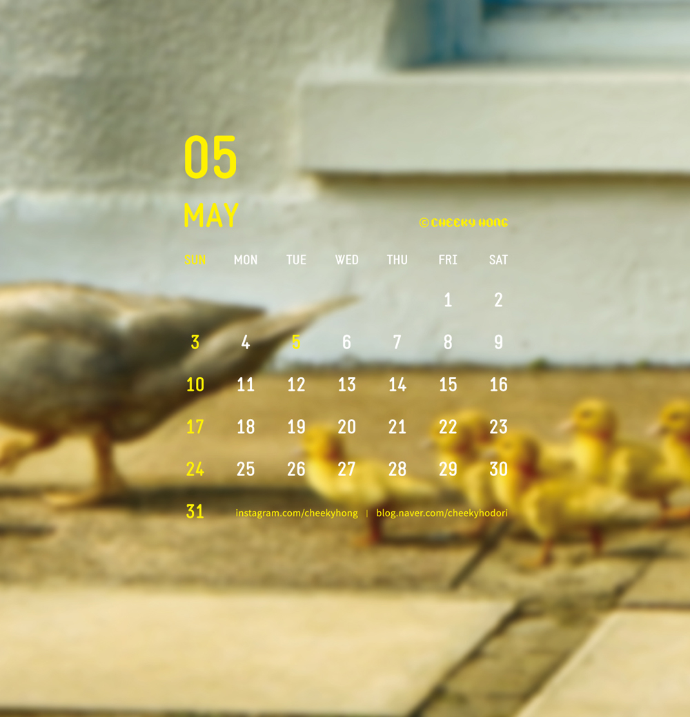그리고 오리가족사진 위에 5월 달력과 정보&로고 그리고 영문 타이틀 그래픽으로 스마트폰 배경화면 디자인을 하게 되었습니다. 완성된 디자인은 아래 디자인 타입별로 디테일하게 설명이 되어있으니 참고하면 좋을 것 같습니다.
