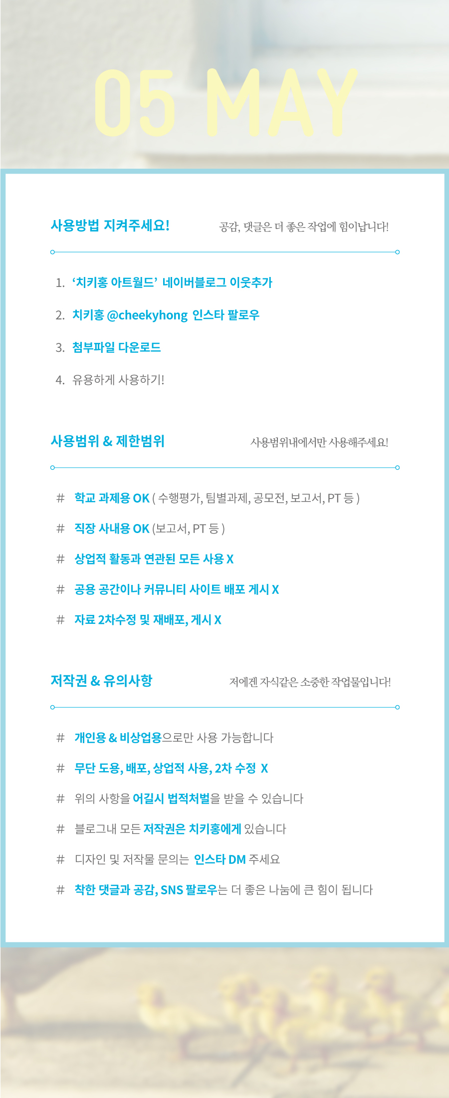 아래 이미지 사용방법을 읽고 따라 해 주시면 되고요. 사용범위는 개인용 & 비상업용 범위 내에서만 사용이 가능한 점 참고하시고요. 저작권 및 유의사항도 필독 후 사용해주시면 감사하겠습니다.
