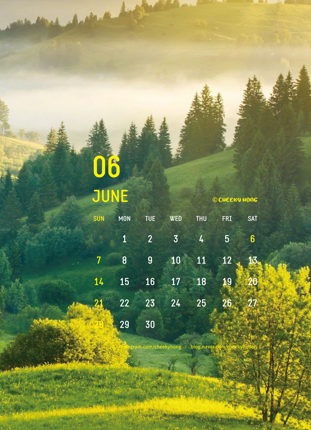6월은 특별한 날이나 행사가 있는 날이 아니라서 계절감과 시기에 집중해서 이미지를 찾게 되었습니다. 본격적인 여름이 시작되기 전 초여름엔 싱그러운 숲이 생각이 났는데요.