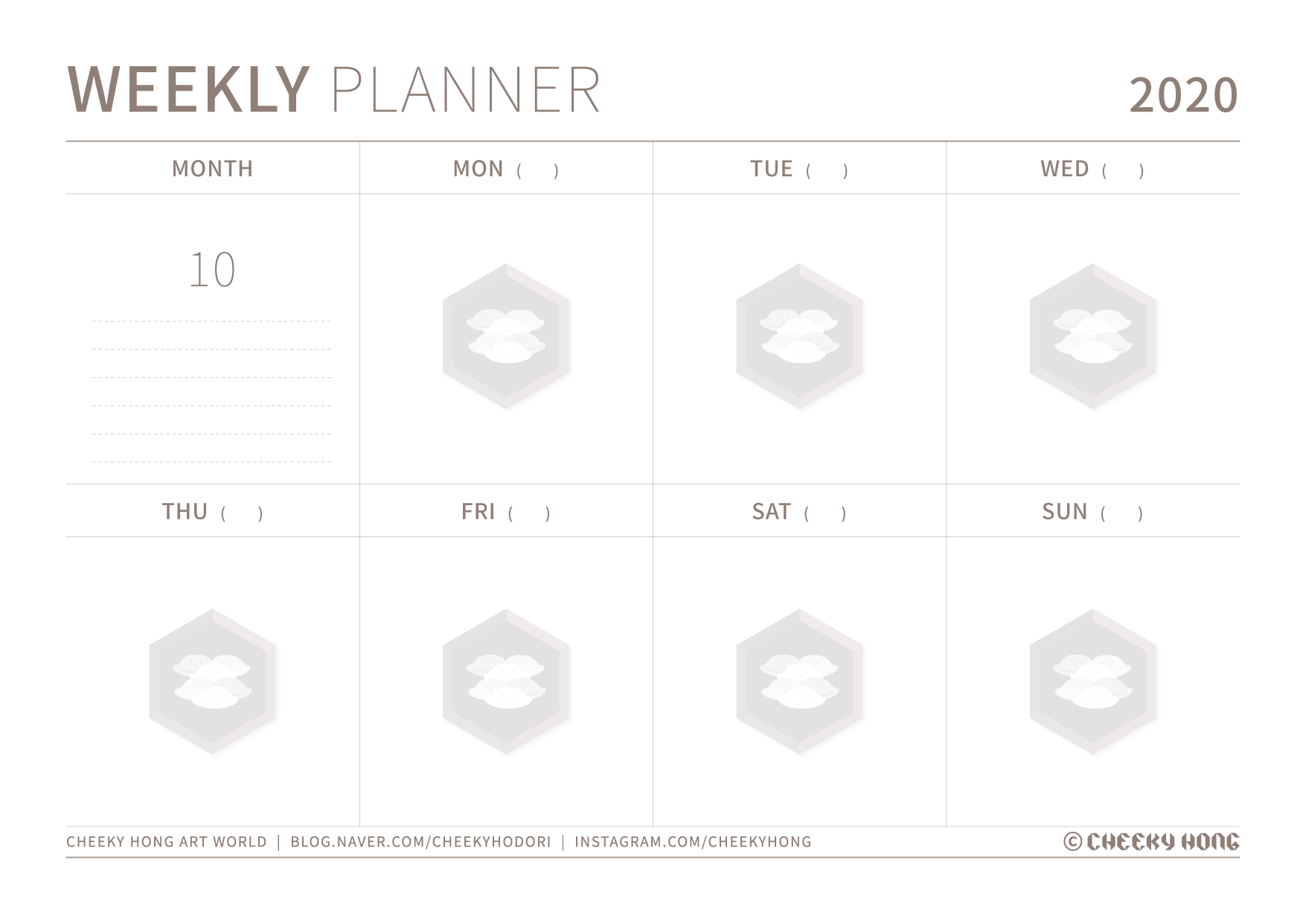 이번에는 일러스트를 넣지 않은 계획표 본연의 기능만을 살린 심플 주간계획표 양식인데요. 10월 가을 느낌은 느낄 수 있도록 텍스트와 라인 색은 브라운으로 칠해주어 계절감은 느낄 수 있도록 해주었습니다.