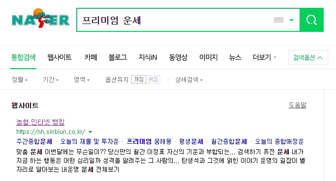 포털에서 '프리미엄 운세'라고 검색하면 농협 운세 관련 사이트가 나옵니다.