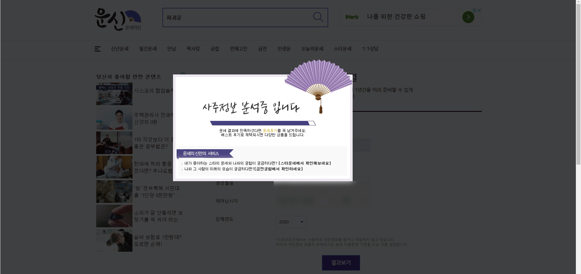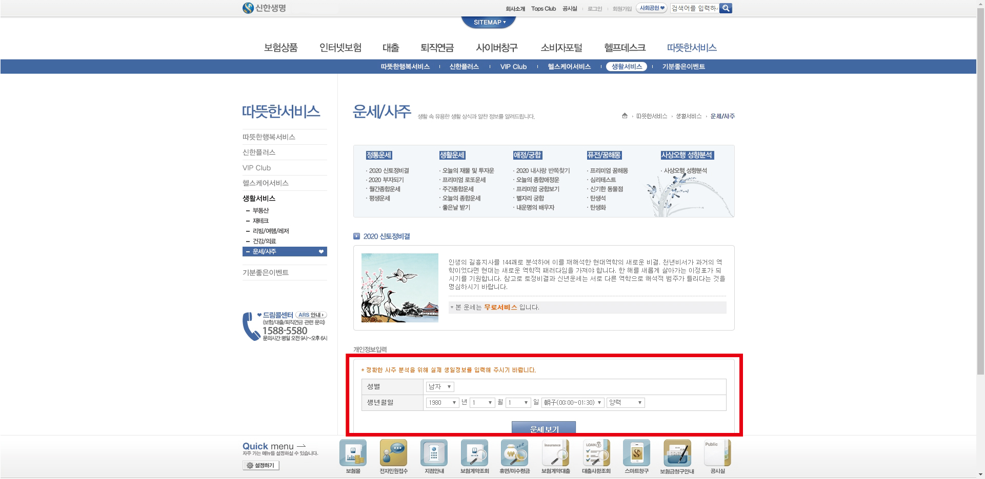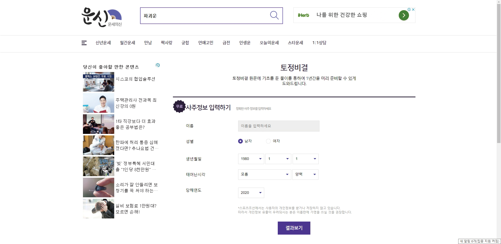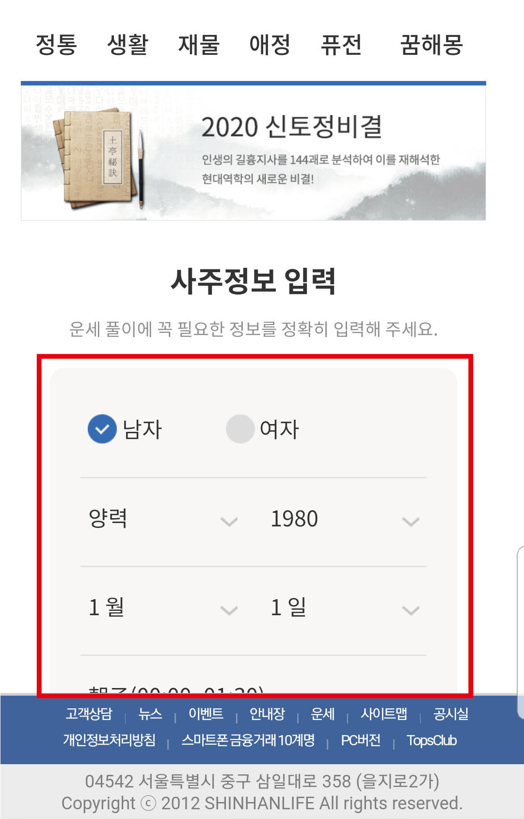 자신의 정보 입력하고 2020년 운세를 보면 됩니다~