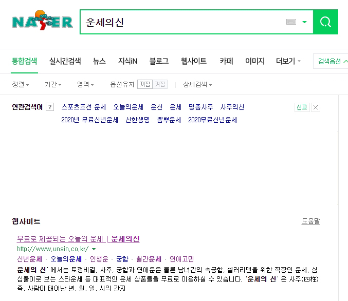 포털에서 '운세의신' 검색하고 들어가줍니다.