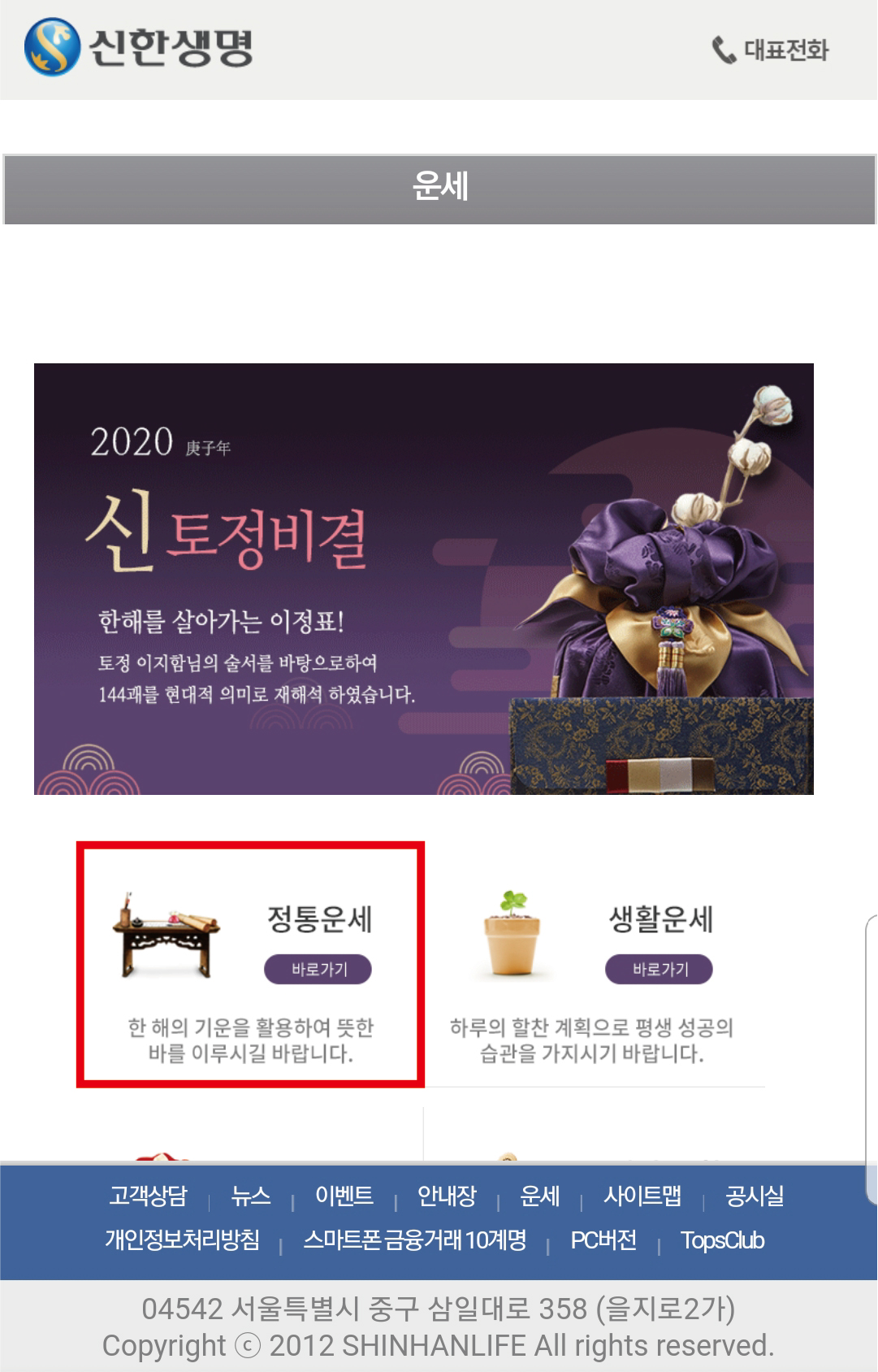 정통 운세와 생활운세 중 정통 운세로 들어갑니다.