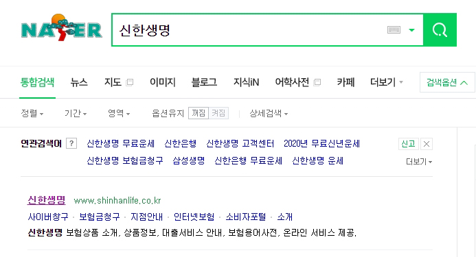 포털에서 '신한생명' 사이트로 들어가줍니다.