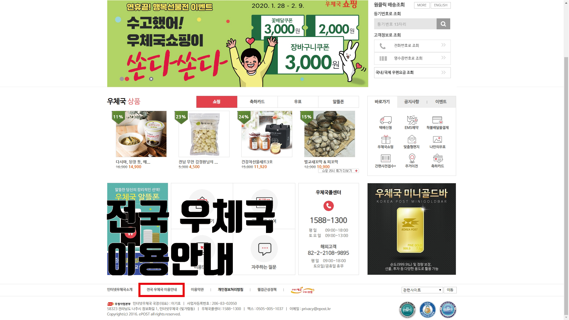 우체국 사이트로 이동했다면 아래로 드래그해서 아래쪽 메뉴들이 보이도록 화면을 이동시켜줍니다.