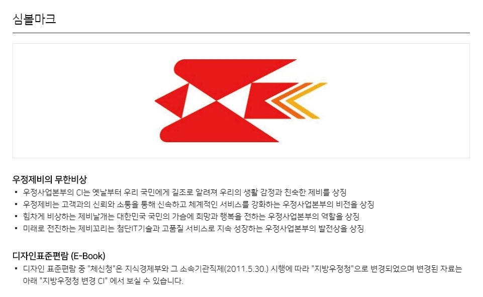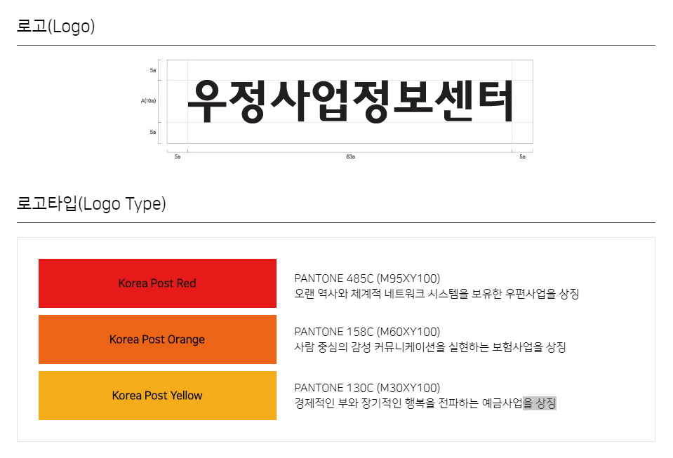 이번에는 로고와 색상별 상징하는 의미가 있어서 보여드리려고 가져왔습니다. 로고보다는 색상이 전 더 눈에 띄더라고요. 빨간 우체통이 떠오르는 레드는 우편사업을 상징하고, 오렌지 컬러는 보험사업을, 옐로는 예금사업을 상징한다고 합니다. 각 색상별로 이렇게 상징하는 게 달랐군요. 다음에 우체국 가면 유심히 살펴봐야겠습니다.