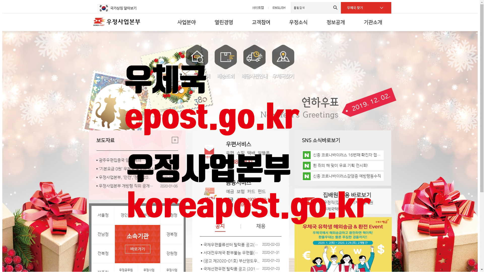 우정사업분부의 첫 메인 페이지 인데요. 우리가 처음 검색해서 들어간 인터넷우체국과 우정사업본부는 서로 다른 독립적인 사이트에요. 두 사이트가 서로 유용한 페이지들이 연결되어 있어 꼭 하나의 사이트처럼 보일 수 있지만 주소가 다른 사이트라는 점 알아두며 좋겠죠!