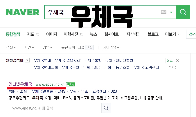 자신이 즐겨 사용하는 포털에서 우체국을 검색해서 위 이미지처럼 나오는 인터넷우체국 사이트로 들어가줍니다.