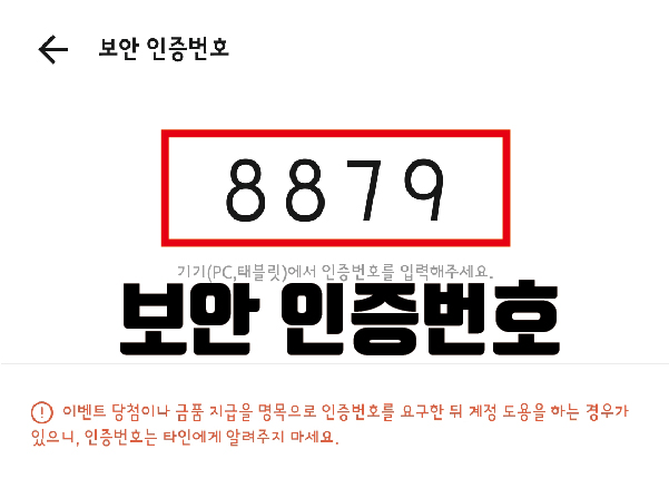 그러면 이렇게 네 자리 보안 인증번호를 볼 수가 있습니다. 저는 8879라는 숫자인데요. 이 숫자를 이제 다시 카카오톡 PC버전에 입력해 주면 됩니다. 그 사이에 까먹지 말고 잘 기억해줍니다. 에전에 인증했을때는 숫자가 4444가 나온적이 있어서 깜짝 놀랐습니다. 별 의미없는 인증번호 숫자지만 그래도 기분이 좀 그렇더라고요. 여러분들은 기분 좋은 7777이나 좋아하는 숫자배열의 보안 인증번호가 나오길 바랍니다.