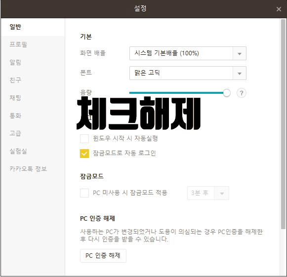 4. 카카오톡 PC버전 설정 찾기