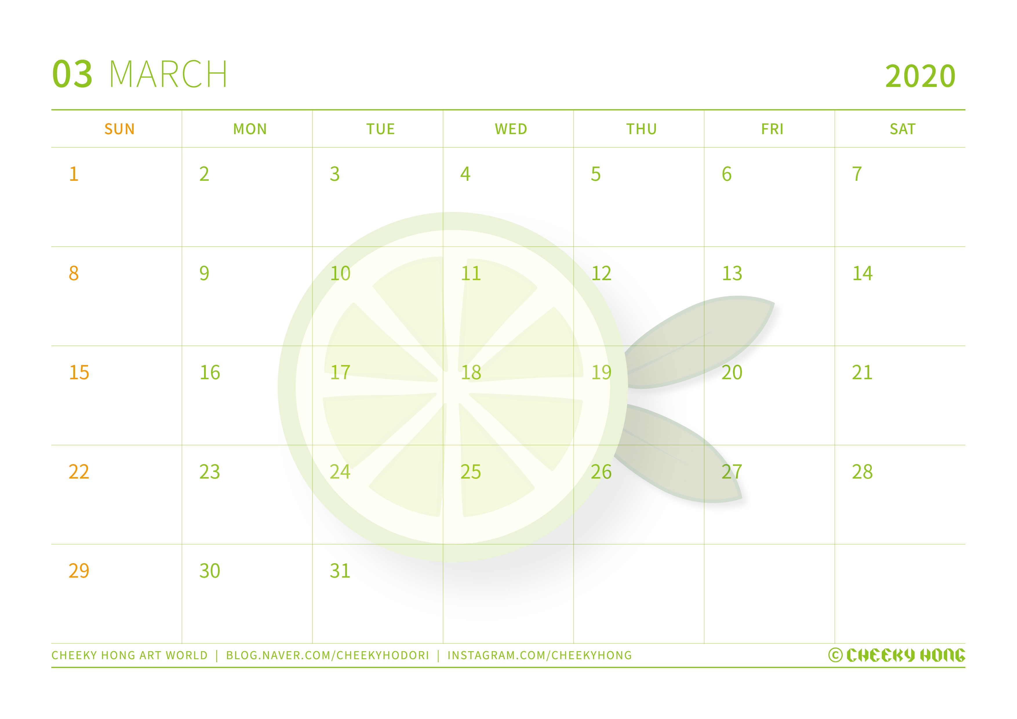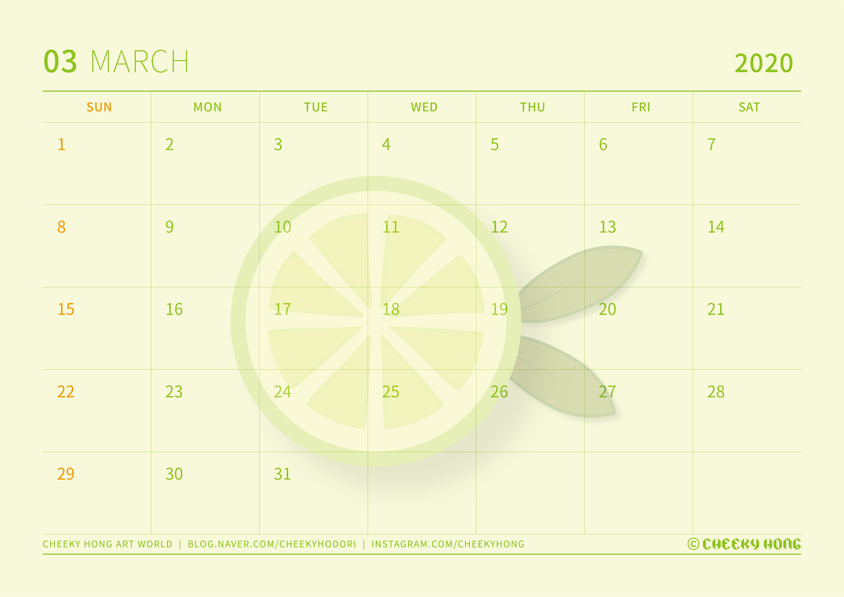 2020/02/17 - [디자인나눔/달력 배경화면] - 2020년 3월 달력 프린트 세로형 연두라임